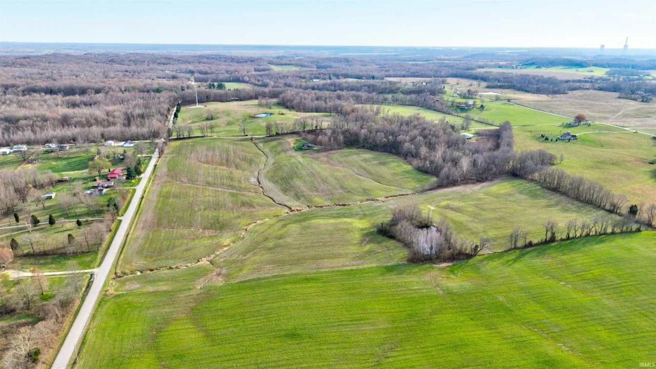 Private 40-acre retreat in Grandview featuring a mix of productive tillable farmland and mature woods ideal for recreation or hunting. Includes a cabin-style structure with a four-car garage, bunk room, and utilities. Road frontage on two sides adds access, flexibility, and future building potential.